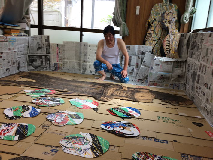 | 空海(大日如来)とブールデル(・・・)が出会う | 段ボール、マジックインキ、塗料 | ||