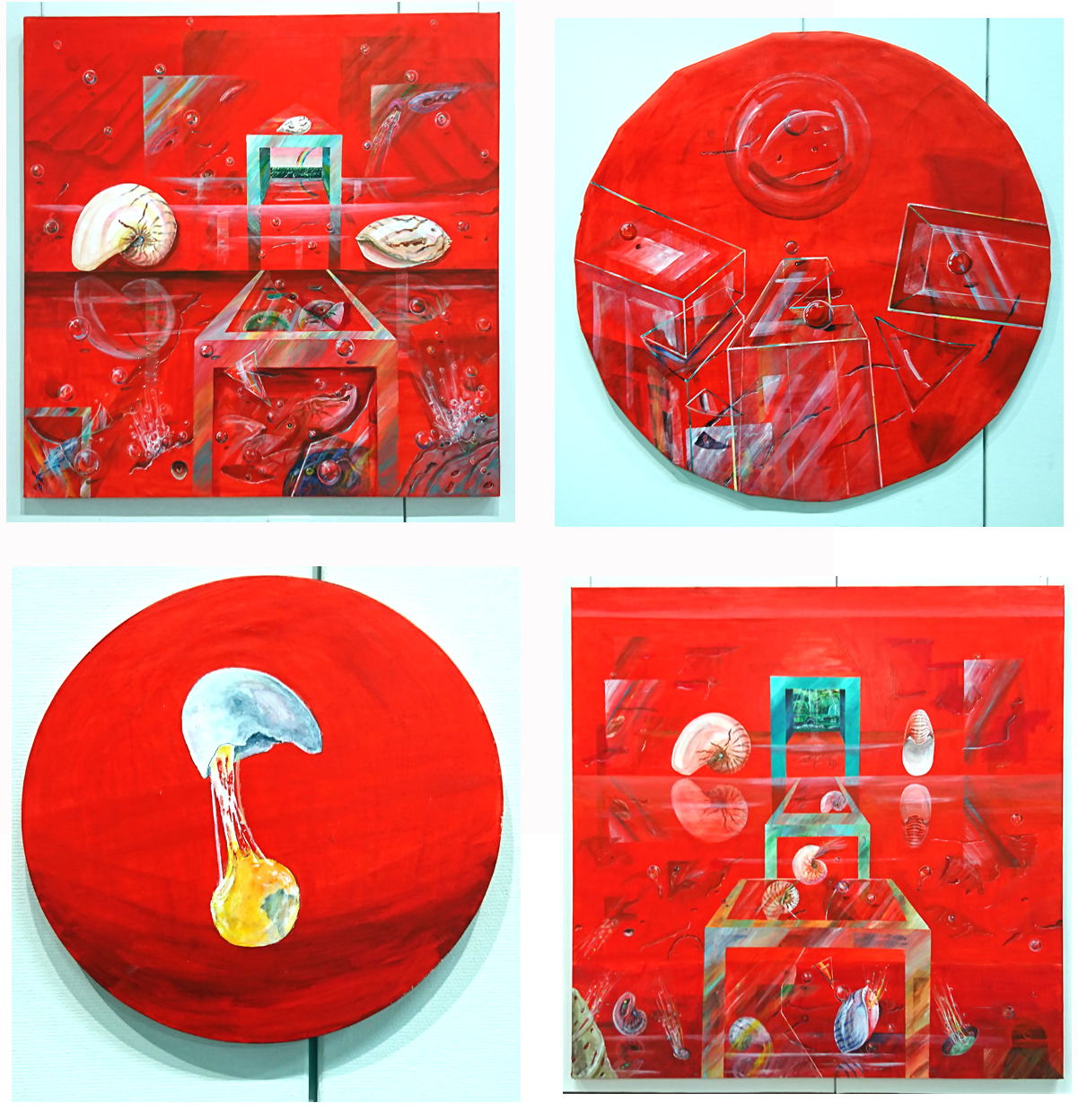 | 進化譚2018 365㎝×394㎝ | 材料:ベニヤ板 コピー紙 段ボール アクリルペイント | ||